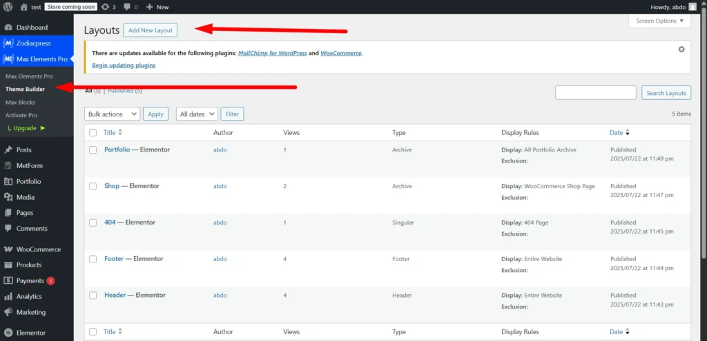 Step 1: Open your Theme Builder, located under Max Elements, and click on Add New Layout