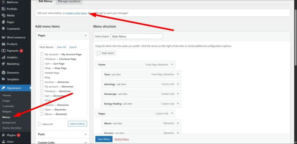 When you import a demo, the default menu that links to the main demo’s pages will be imported as well. To create a custom menu that better suits your website’s structure and content, follow these steps: