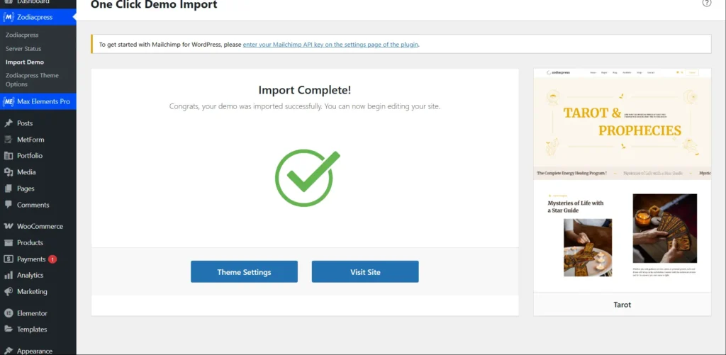 Please note that importing a demo will overwrite some of your existing settings, such as your menu and Customizer options. For optimal results, it’s recommended to import the demo on a fresh WordPress installation.